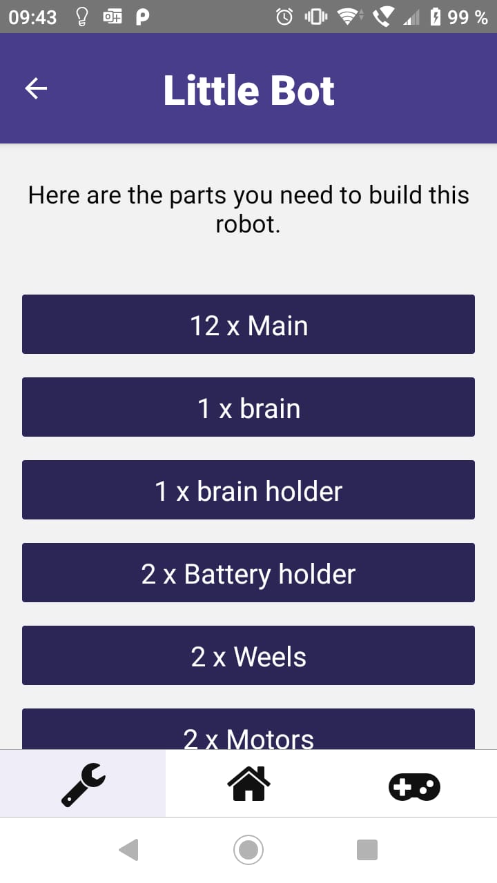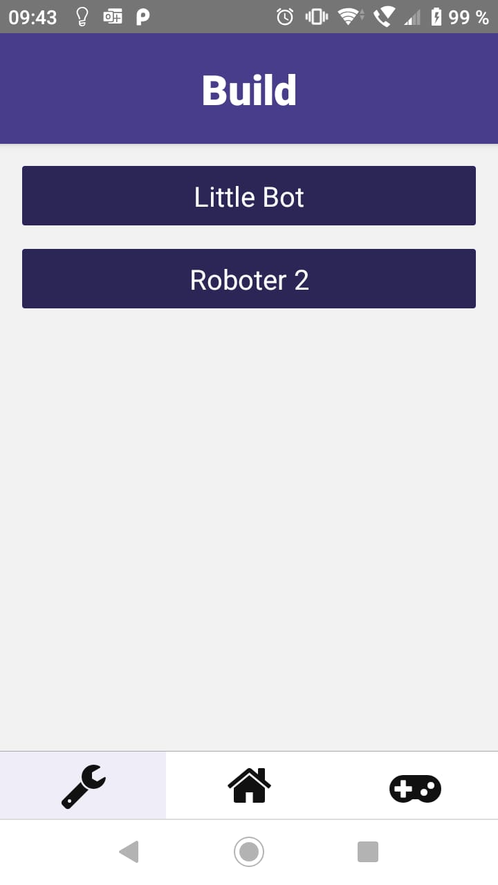 In the pictures below you can see my latest app. This app is built in a way that there is a tab view with the home page, build page and control page. Below the build page there is a plug view with instructions for building the robots. On the control page you have to connect to a microcontroller via bluetooth to control a robot. This does not work at the moment because I have problems with the existing bluethooth module and I can't connect it with my mobile phone.