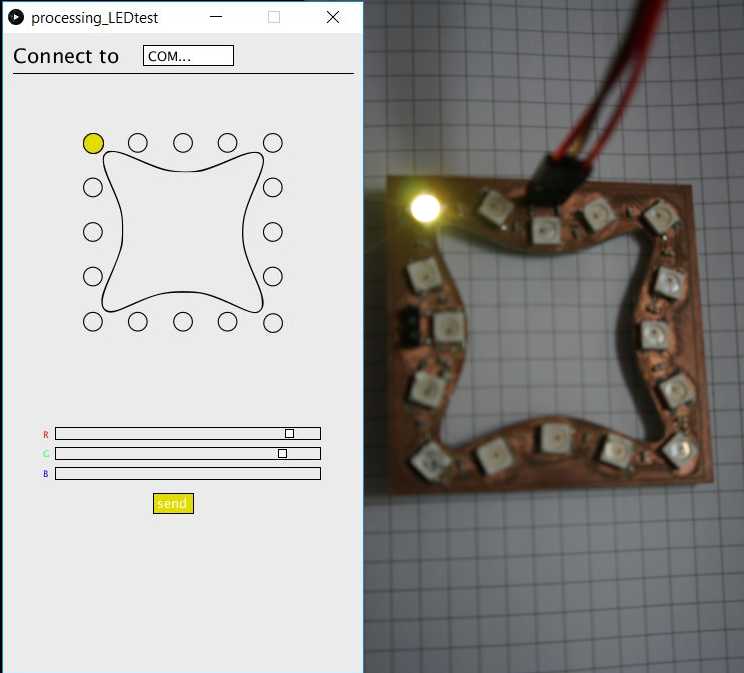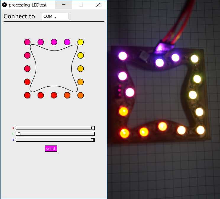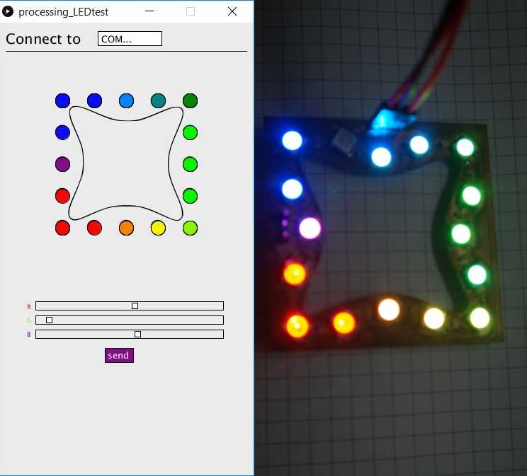 Since I unfortunately still do not have a working Bluetooth adapter. I have decided to find an alternative for this assignment. I thought it would be cool if I could control the colors of the LEDs in my LED ring. So I wrote a little application using a programming language called Processing which communicates with the Arduino via the serial interface.