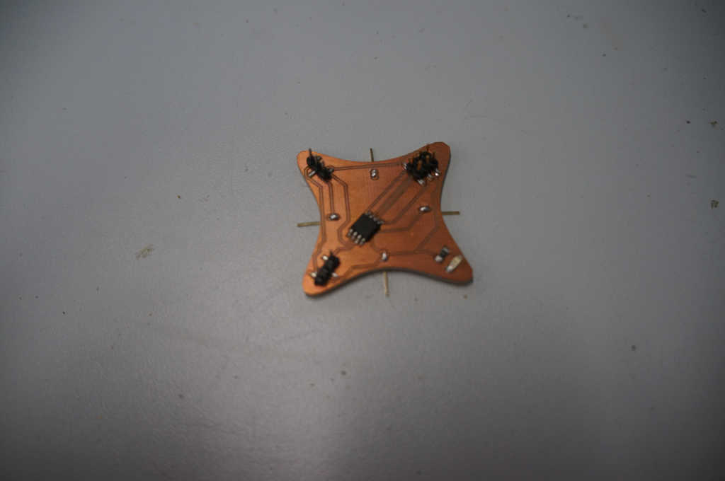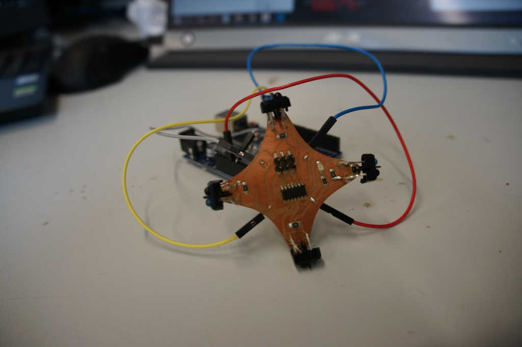 After I programmed and wired everything I noticed that the output boards were broken somewhere because the status LED, the power supply I have on all my boards, didn't light up. I tried to fix them but I only made things worse. In the end I just tested my imput board with an Arduino which worked fine. The horn was used as a replacement in my final. Because of the multiple building of the roboeter one of the other hubs broke down.