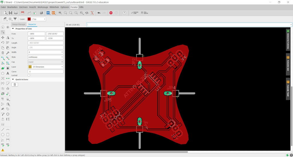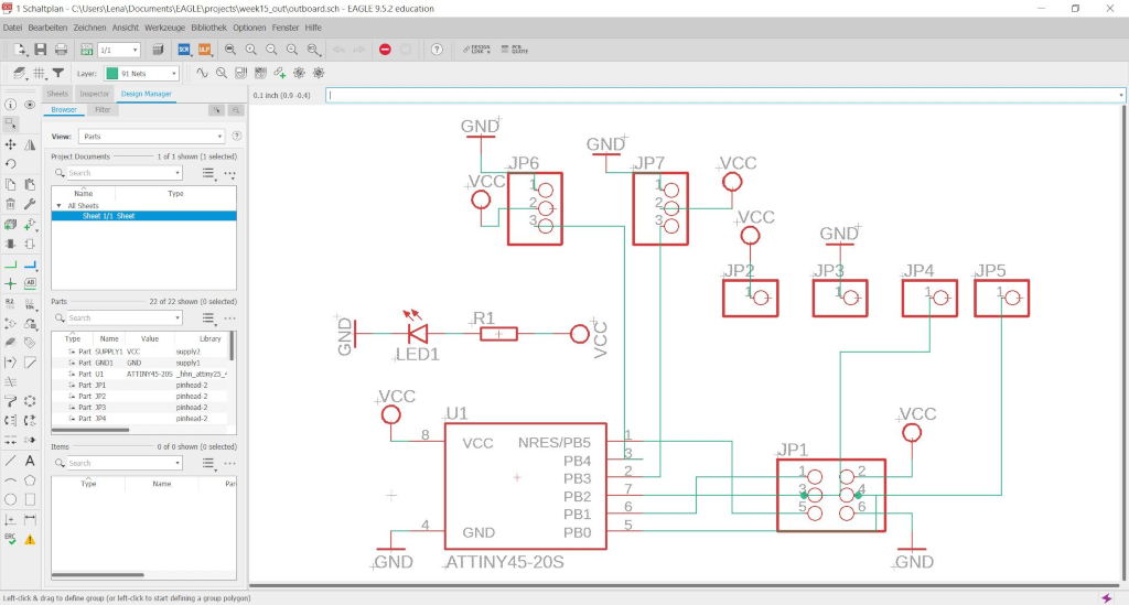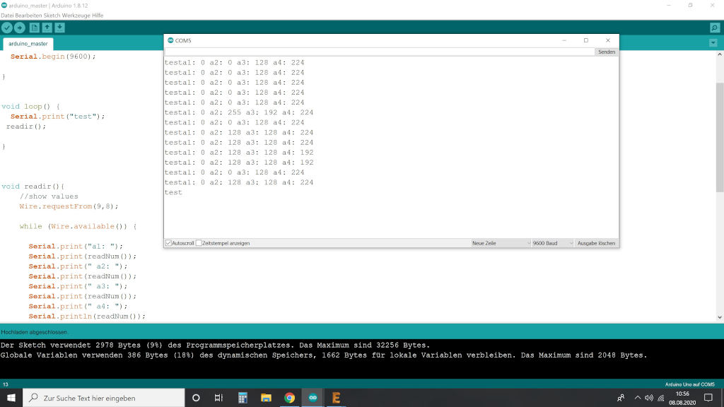 Of course I tested the boards anyway. I simply connected them with cables. First I wrote a 2 programms with which the boards can communicate, similar to the ones in the group assiment.