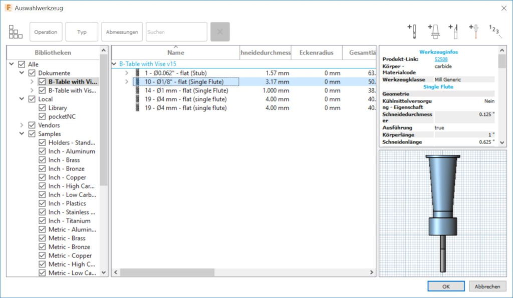 If you go to select the milling cutter, it will open more firmly and you can choose the right milling cutter. If you use the PocketNC milling cutters, you can download a library of milling cutters from their site.