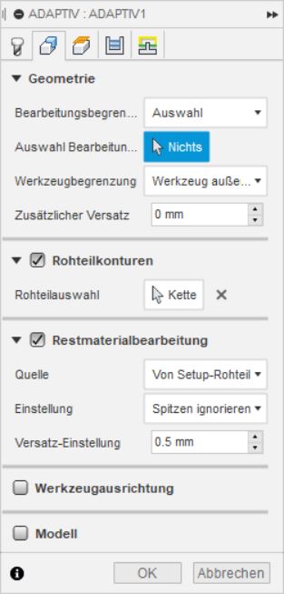 Now we come to the next tab in the menu bar. First we take off some material. For this we go to 3D Adaprive.