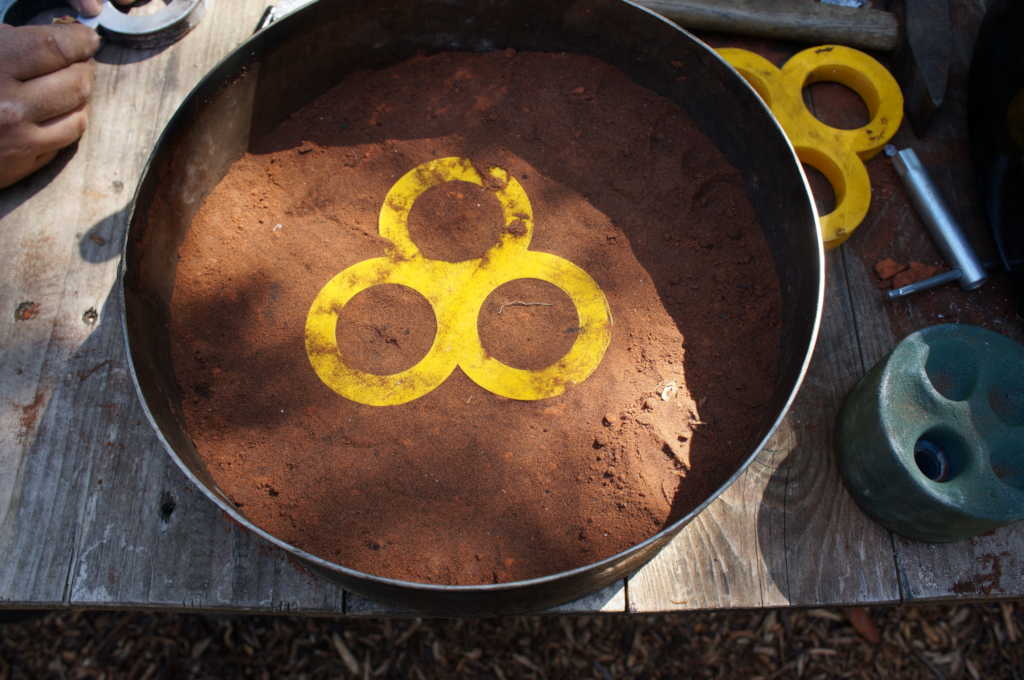 The sand must be tamped as hard as possible so that the aluminium can only flow exactly where our shape is.