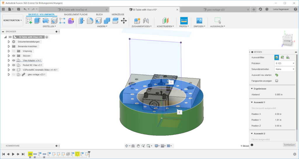 After I have clamped my tool with which I want to mill, I measure the distance to the middle point and enter the offset at the corresponding position of the selected tool.