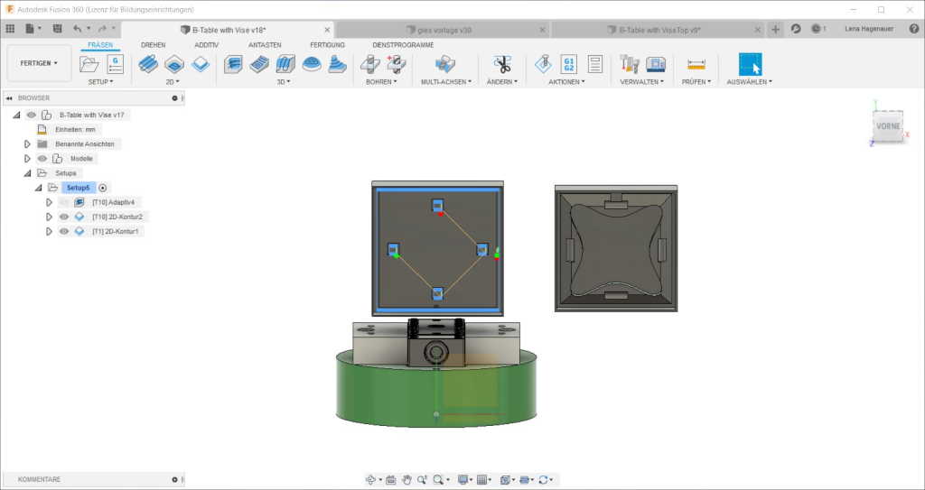 On the 2 side of the setup you can adjust the size of the workpiece if you want to mill at a certain position.