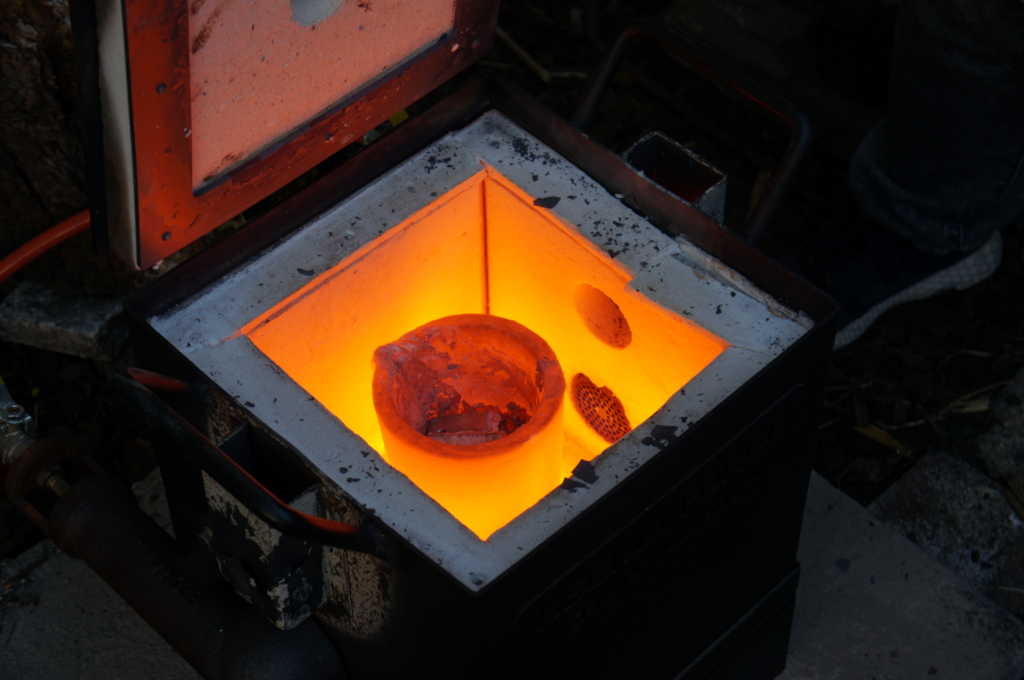 Of course the protective clothing is a must have, because the oven has to be very hot for the aluminuim about 650°C. A face shield, a safety coat, safety gloves and safety shoes.