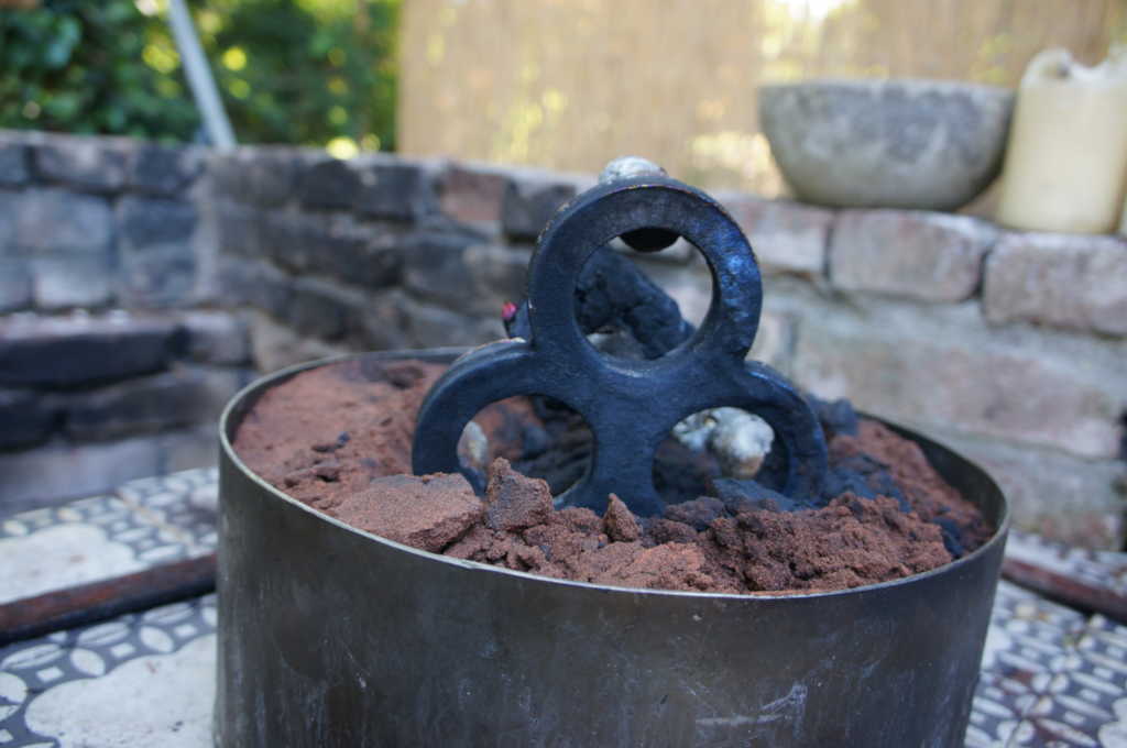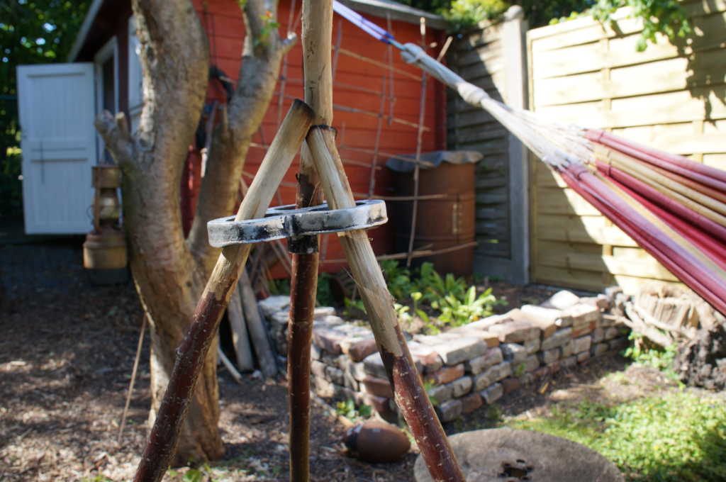 And ready is the 3-legged holder to quickly build a swivel grill on the way.