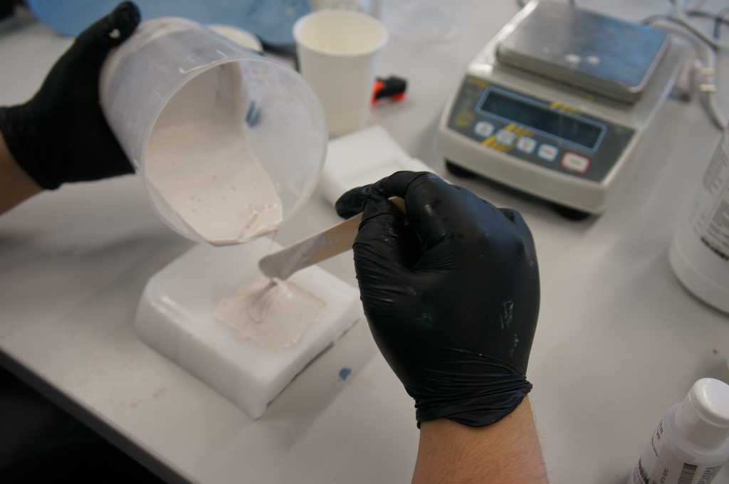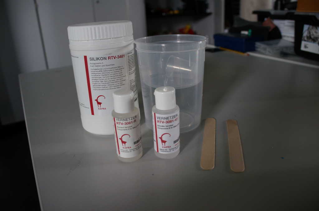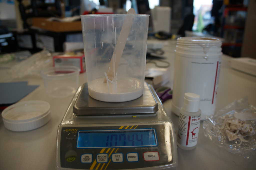 The silicone and hardener must be mixed in a 100:5 ratio. For this purpose I used a digital vage.