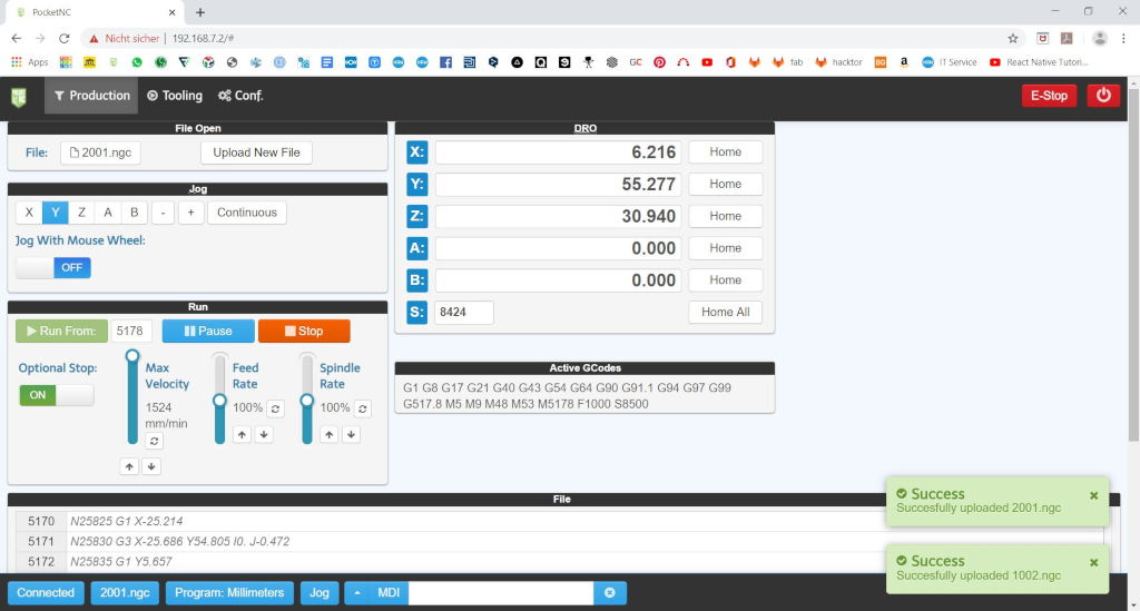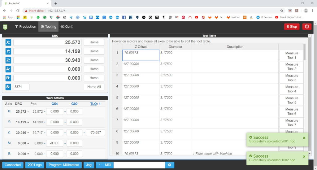 Now I have to send the file to the milling machine. To do this I connect it via usb cable and first of all I install the driver. Afterwards I can reach the milling machine under the ip address http://192.168.7.2/.