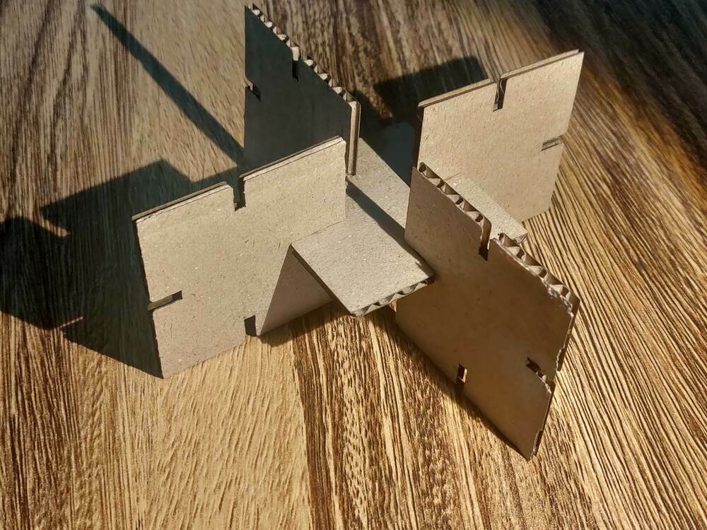 I initially planned to cut Cardboard with 5mm thickness but forgot to adjust the slot width before cutting.