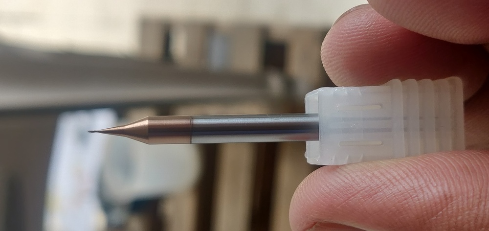 Apply double sided tape to the backside of the board. Remove the tape and fix it onto the sacrificial layer(see that it is firmly fixed). Load the bit(This is a job that requires complete your attention). Carefully check the Z-axis origin.