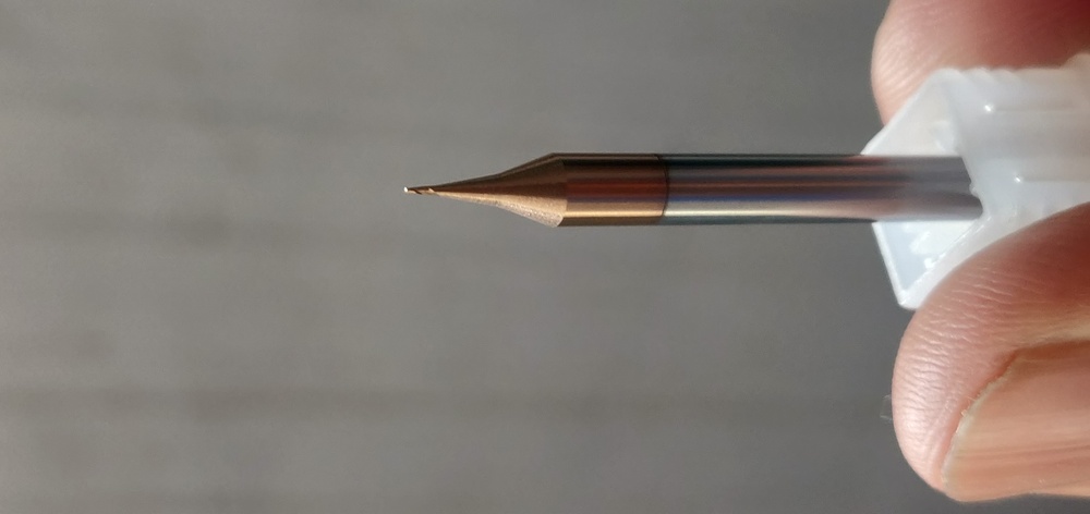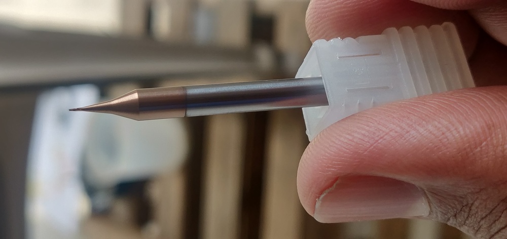 There will be three types of bits we will use in this Process, they are 1/64, 1/32 and 0.01. We use the 1/64 bit for milling the traces, 1/32 bit for outlines. However the shank sizes also vary, the Roland SRM-20’s Collet supports upto 6mm shank diameter for smaller diameters(3 or 4mm) we will require an optional collet or a converter. The bits come in various combinations with variations in the shank sizes, end mill types(flat or rounded),size and number of flutes and also with various coatings.For this application we use a standard type of bit which has fixed number of flutes, shank size, type of end mill(flat) and as mentioned earlier, bit size.