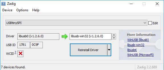 avrdude.exe: Error: Could not find USBtiny device (0x1781/0xc9f)