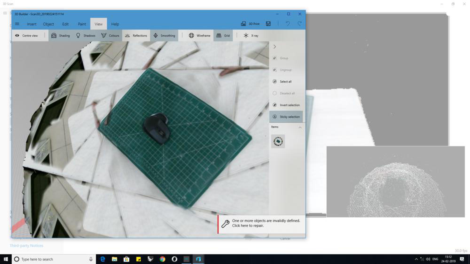 During my research I have found that compared to the skanect software 3D scan app has two advantages one is that it was developed by microsoft and has integrated its other softwares like 3d Builder to create a good scan and use Print 3D App to print the the scan, but I will be using Meshmixer to smoothen my scan surface and used the inspect tool to check for errors.