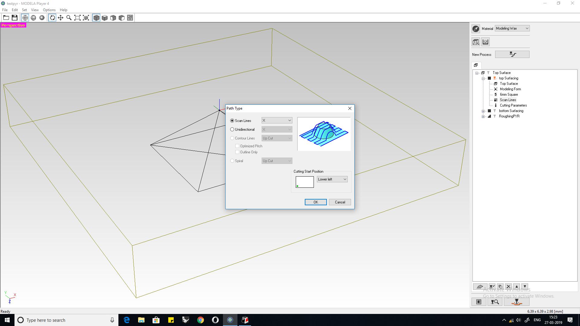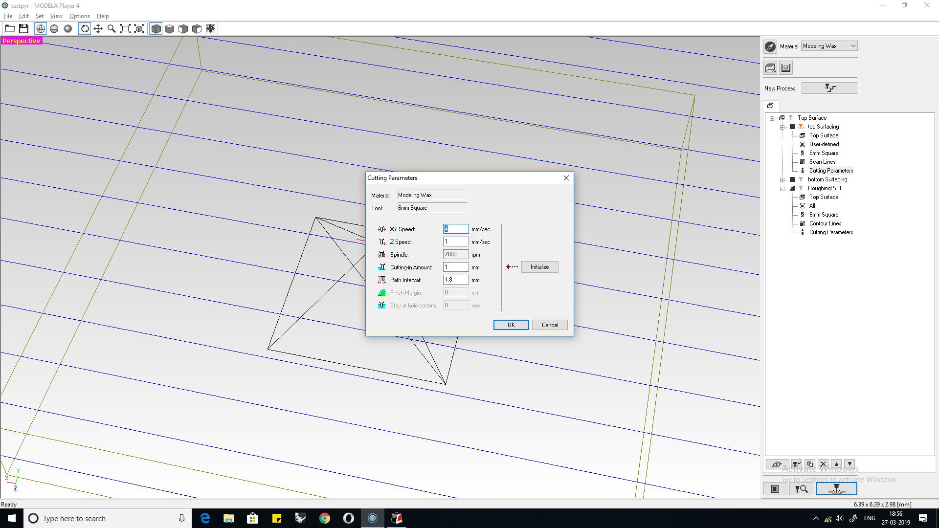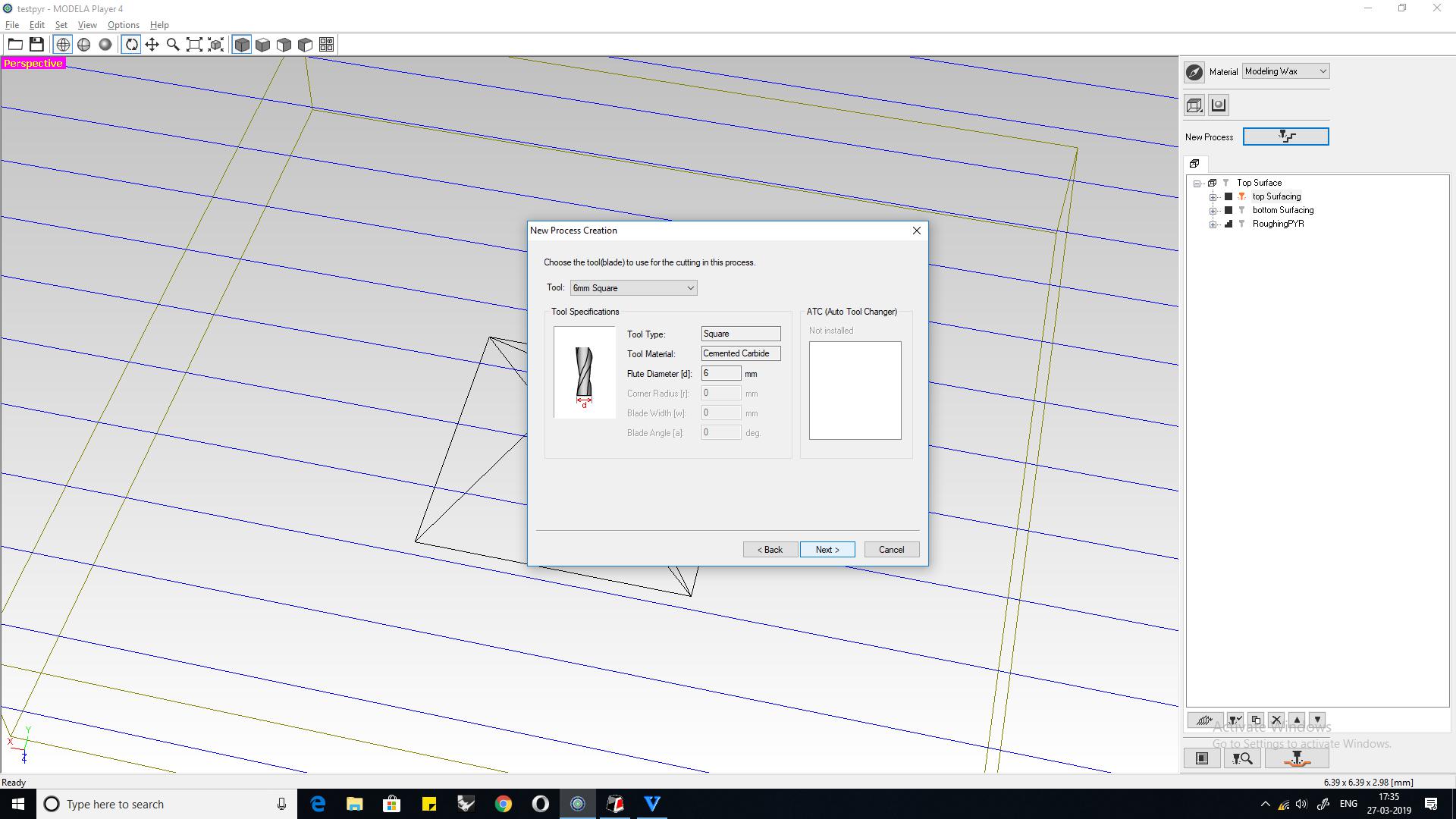 In this step we have to design a target by milling a block of wax, in order to do that we have to design it. In my case, I am designing a new logo for my company’s products. I start by doing a 3D Design. The design is purposefully kept simple as this process is new to me.
