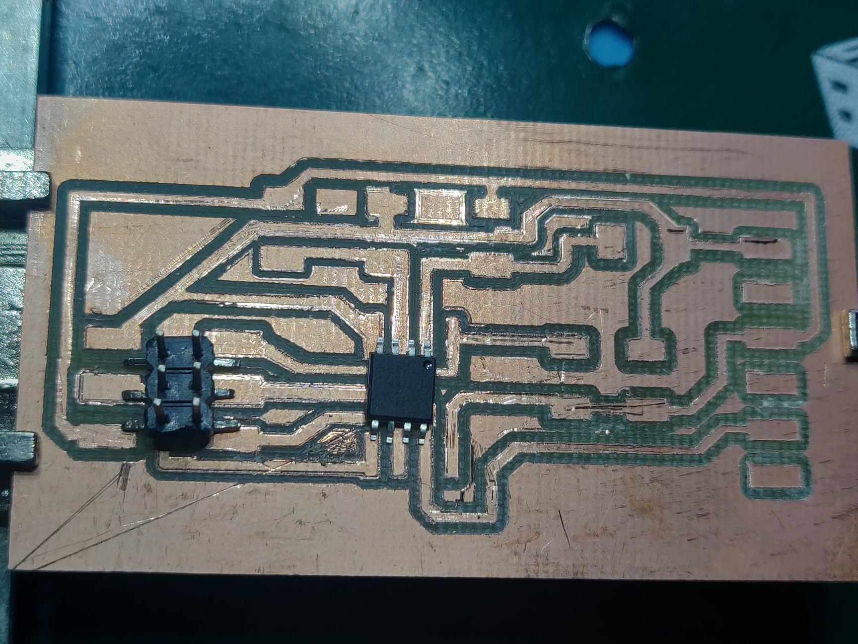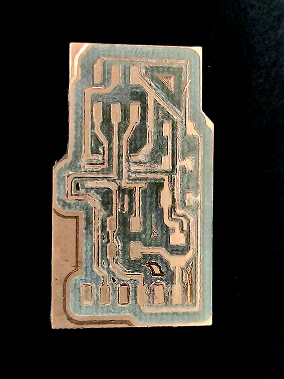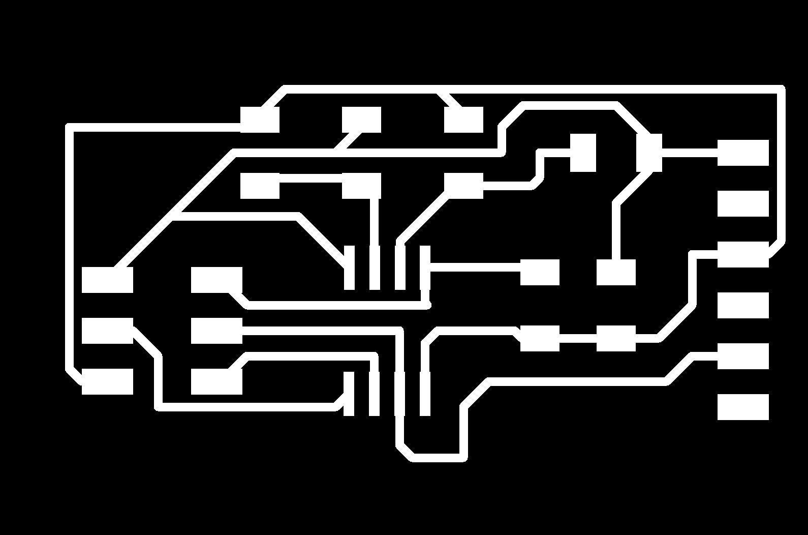 Truth be told, I simply tried to replicate the circuit design in the Fabacademy archives. I redrew the circuit in eagle and exported the image with a resolution of 500 DPI however, I hit a snag while milling the board I missed the Image sizing step while I was milling the board where I forgot to change the size of the image because of which the PCB traces were milled in the wrong dimensions.