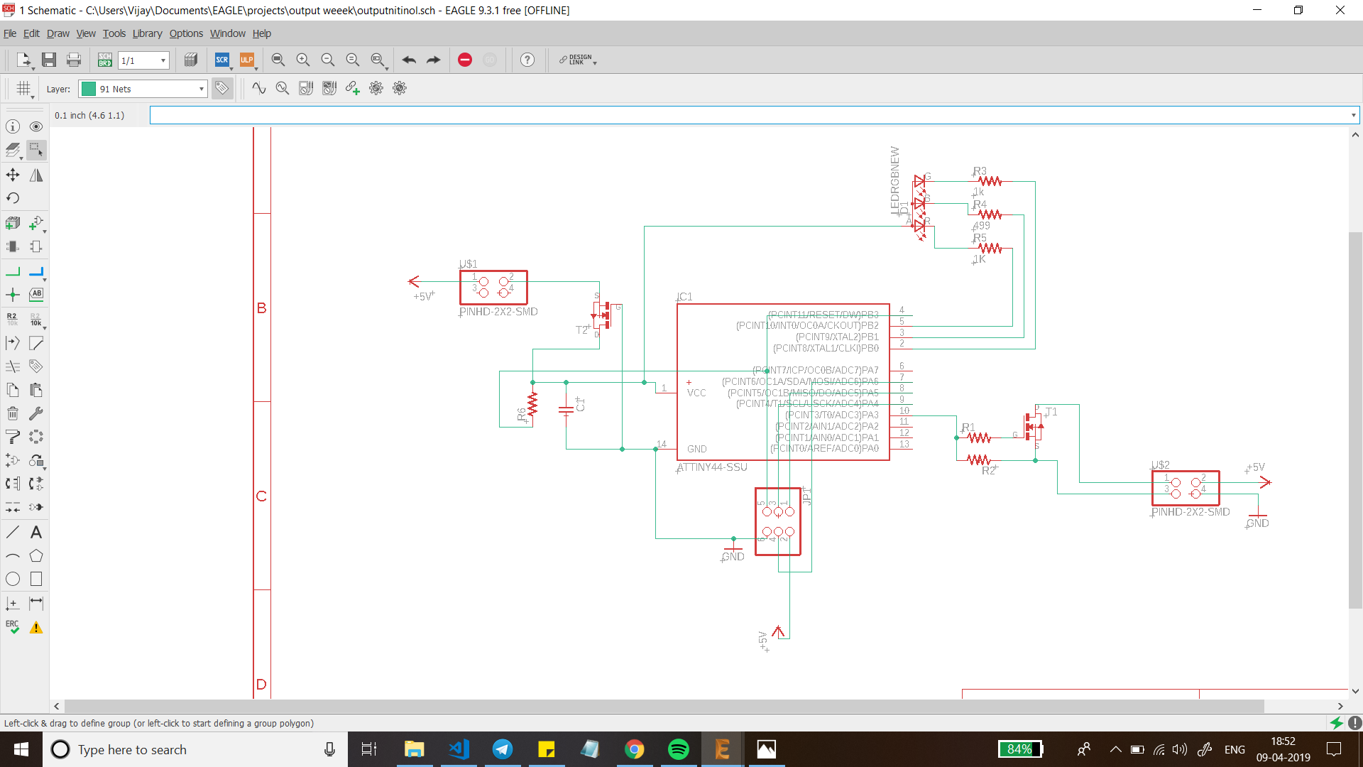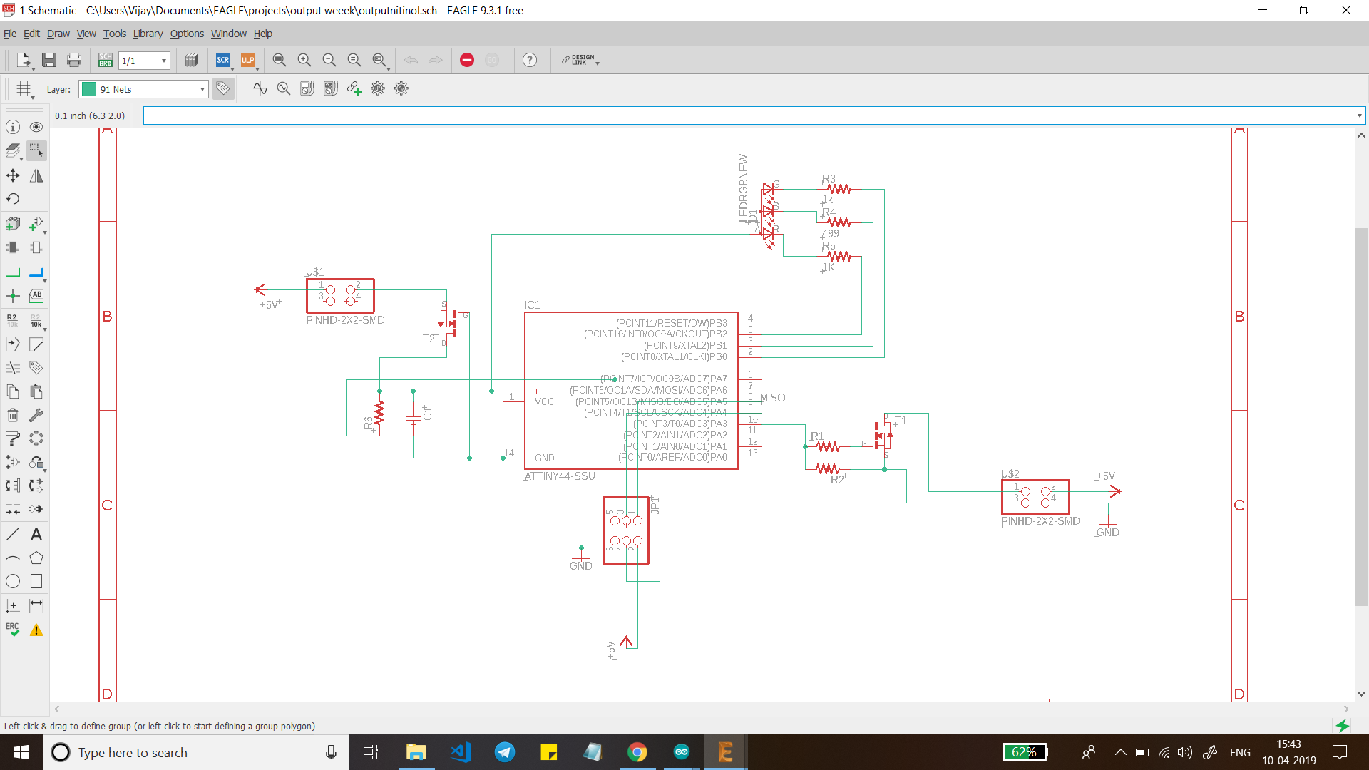 This week I designed my board to have two different outputs one is an RGB LED and the other is for a shape memory alloy called Nitinol.