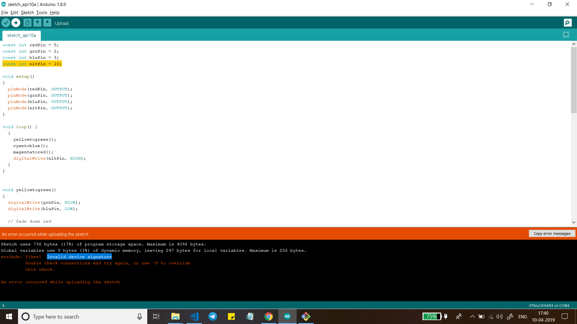 The next code is for both nitinol wire and RGB LED.