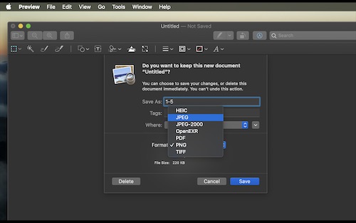 Once you have compressed the image, if you close out of the tap, you will be prompted to name your photo and can also change the format of the image. This is how I change the images from PNG’s to JPEG’s.
