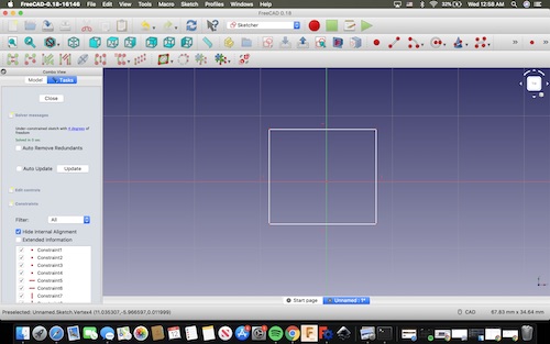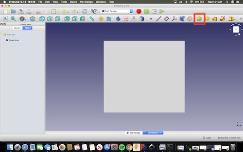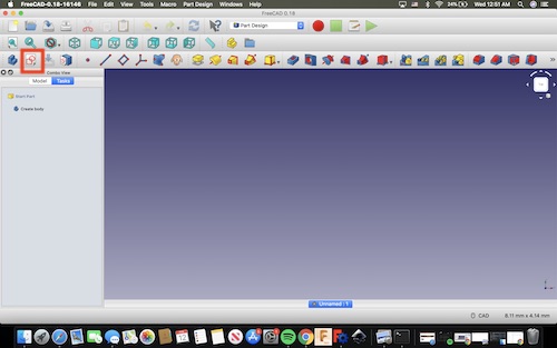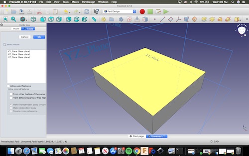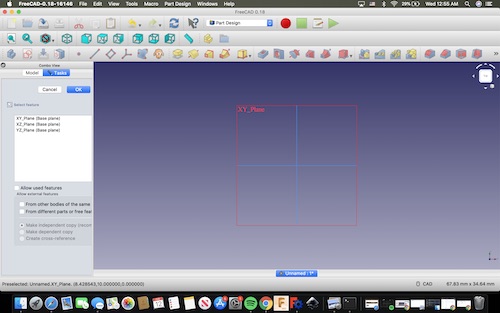 I had never used FreeCad before, so I downloaded it and explored the program a bit. I started off by going into the “Part Design” workbench. I then created a new sketch.