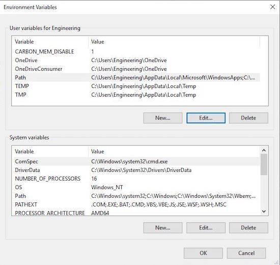 open Path on the PC, select Environment Variables -> Path -> New, and paste the directory path that was just copied