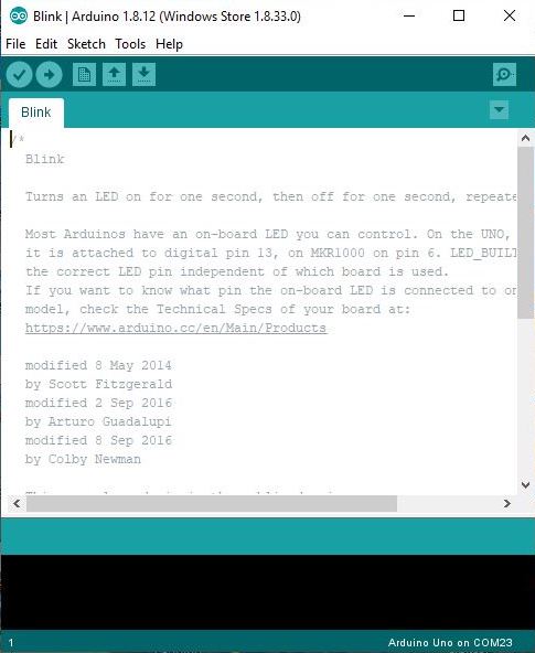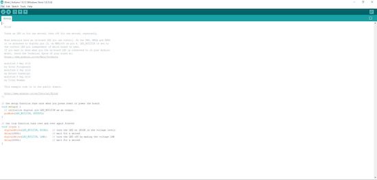 - click File -> Examples -> 01.Basics -> Blink to open to simple Blink code