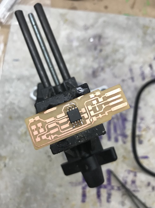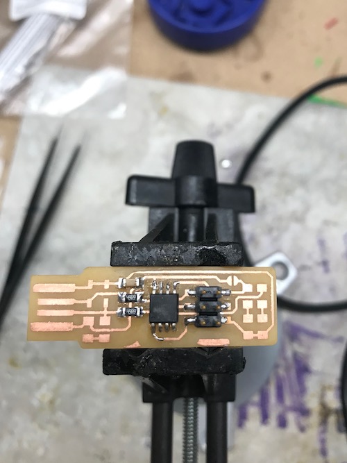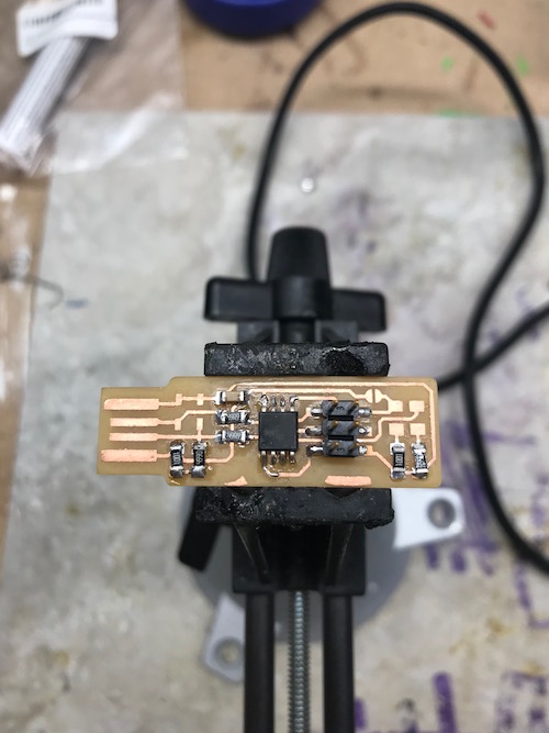 The individual assignment for this week is to make an in-circuit programmer by milling and stuffing the PCB and testing it.