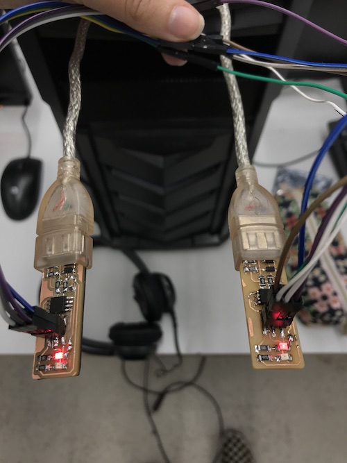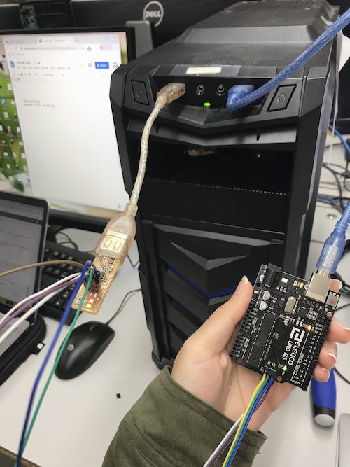 Once the hardware portion was complete, it was time to focus on the software. Because of some issues with my Mac laptop, I opted to use the Windows PC’s at my school’s lab. I connected my programmer to one USB port and my peer’s programmer that had already been programmed to the other port.