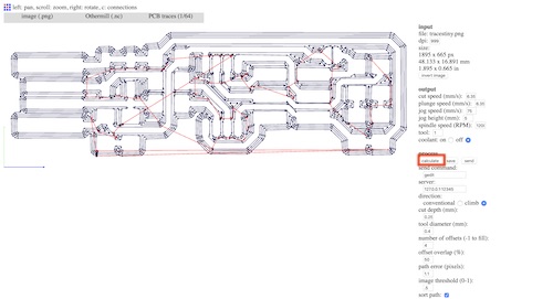 Finally, I clicked ‘calculate’ to generate the toolpaths, and saved the file. This file could be exported to the Othermill to be milled.