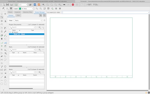 Once my schematic was created, I typed ‘frame’ into the commmand line to create a frame inside which I would draw my schematic. I dragged the rectangle and pressed ‘escape’.