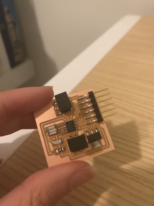 The individual assignment for this week was to add an output device to a microcontroller board we’ve designed and program it to do something.