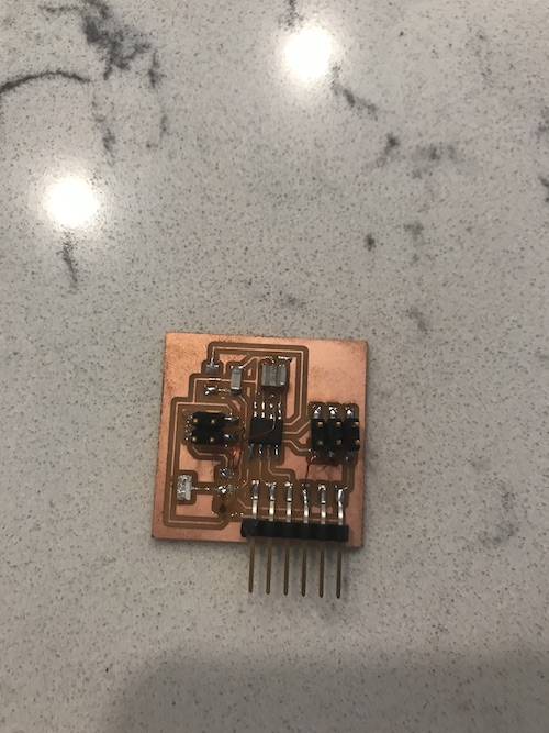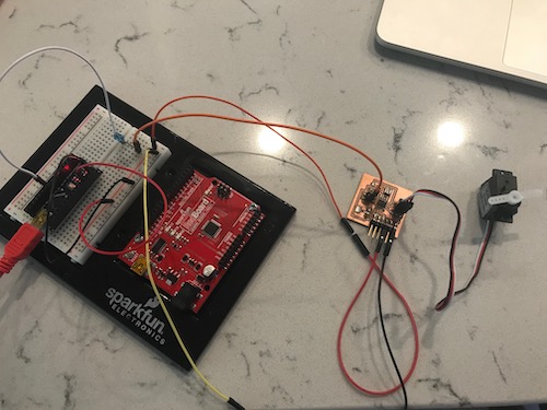 Apparently, I am prone to little mistakes, because I realized I forgot to route two connections. I jumper-wired these and altered my schematic and board files so they would be correct. As far as the software side, I used Arduino’s ‘Sweep’ servo code to test if my board worked. Here is the code:
