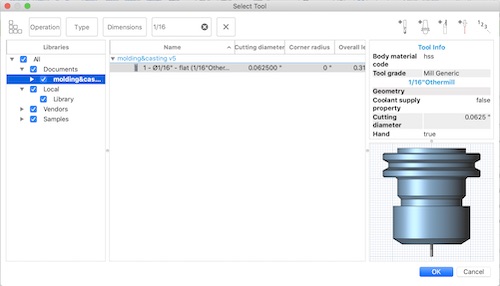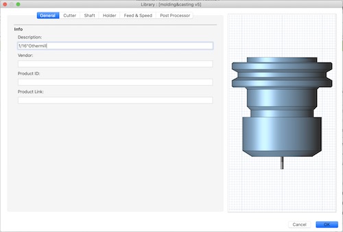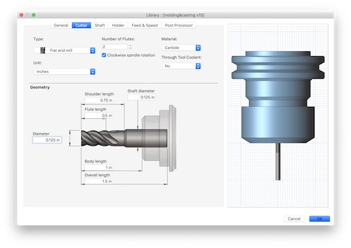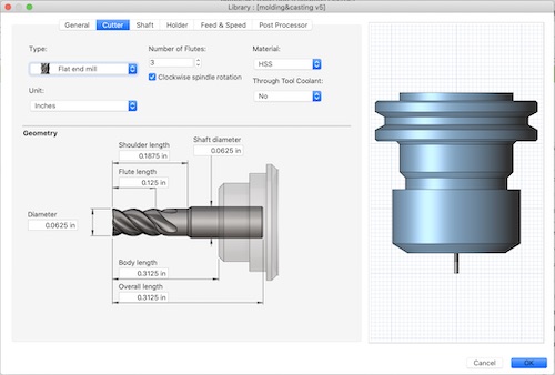 I filled in what I could of the dimensions of the bit as I was not in the lab and was unable to measure it. I chose a flat end mill.