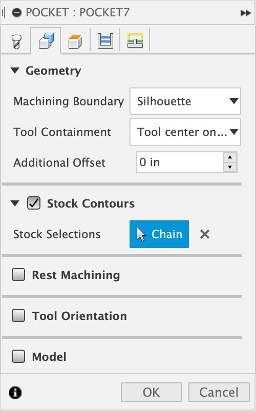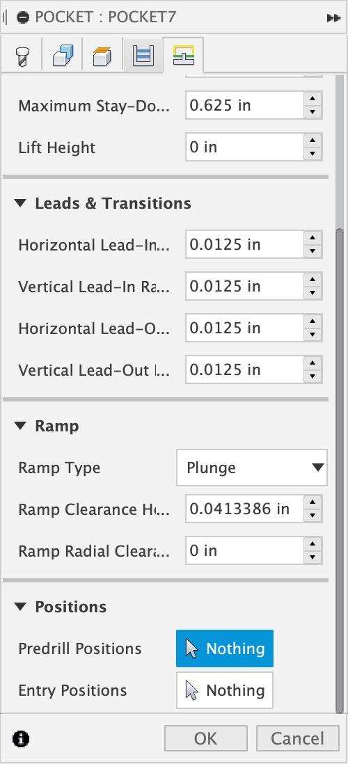 The next step was creating the 3D toolpath. I was advised to do a 3D pocket clearing. I first created a new tool, named 1/8”Othermill. My peer Elaine Liu was kind enough to provide me with the dimensions of the bit, as she was also using it.