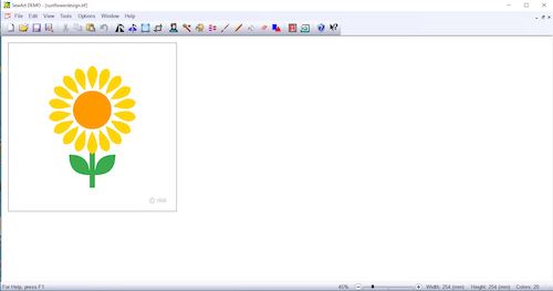 Once I got back into the lab, I downloaded SewArt on the Windows. I followed to instructions to install it. Because it was the 30 day trial, I was allowed to use only up to 6 colors for my design. This was fine with me, so I chose to embroider a different sunflower with 3 colors that I found on Google. First, I put the image into SewArt.