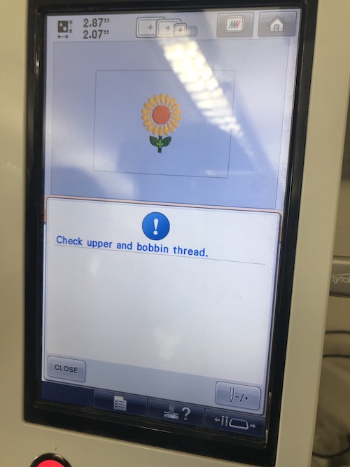 Firstly, I got a piece of scrap fabric from the lab and selected an embroidery hoop. I placed the fabric inside the hoop and screwed it together tightly, then inserted the hoop into the machine. I plugged the USB into the machine and downloaded my design. I put the three colors of my design into the machine and assigned the colors to their number. The most difficult part of using the machine was maintaining the tension of the strings and getting the bobbin to work. Below you can see my design uploaded on the embroidery machine with the colors assigned, in addition to the error screen I received when the machine sensed that something was not right. Here is a video of the embroidery machine working and my final result!