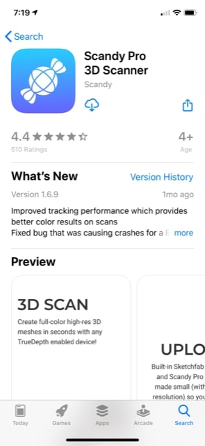 The second individual assignment for this week was to create a 3D scan of something that we had. For this assignment, I decided to take a different route, as I used my iPhone XR and used different programs to 3D scan different objects. The first app that I tried was called “Scandy” and this required me to use my front-facing camera, as it has a true depth sensor on it, giving it the ability to do things such as FaceID/ facial recognition.
