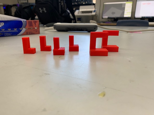 After I finished creating my files, I uploaded them to the lulzbot and imported them into Cura so I would be able to print them out. After adjusting a few settings such as rotating a few pieces for efficiency, I started the print, which took around 3 hours to complete.