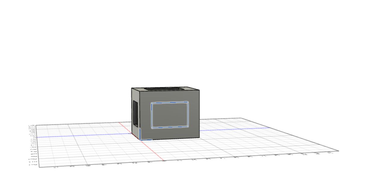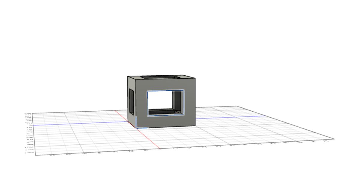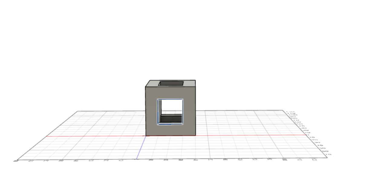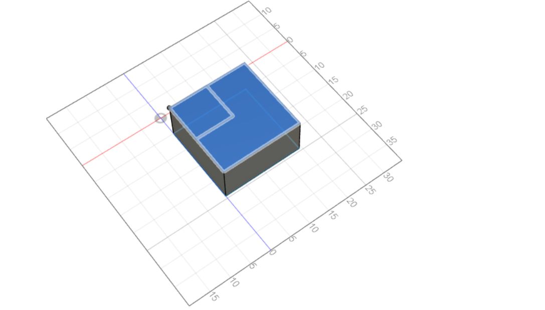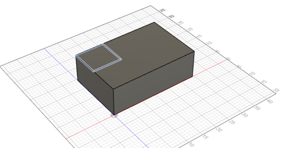 After the extrusion was made, I created a sketch of a square on the top left side of the rectangular prism which looks like this