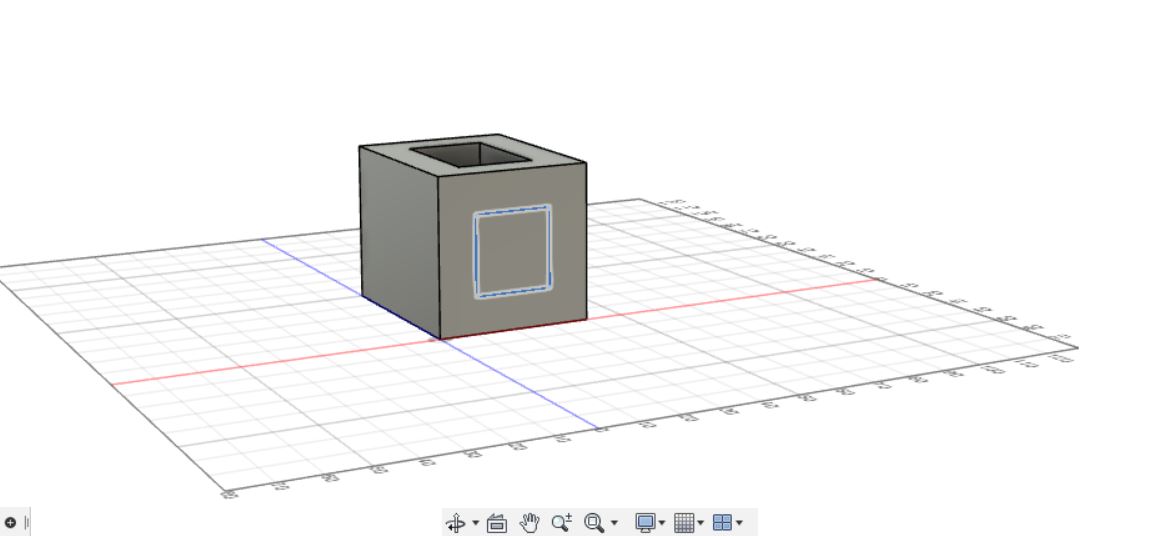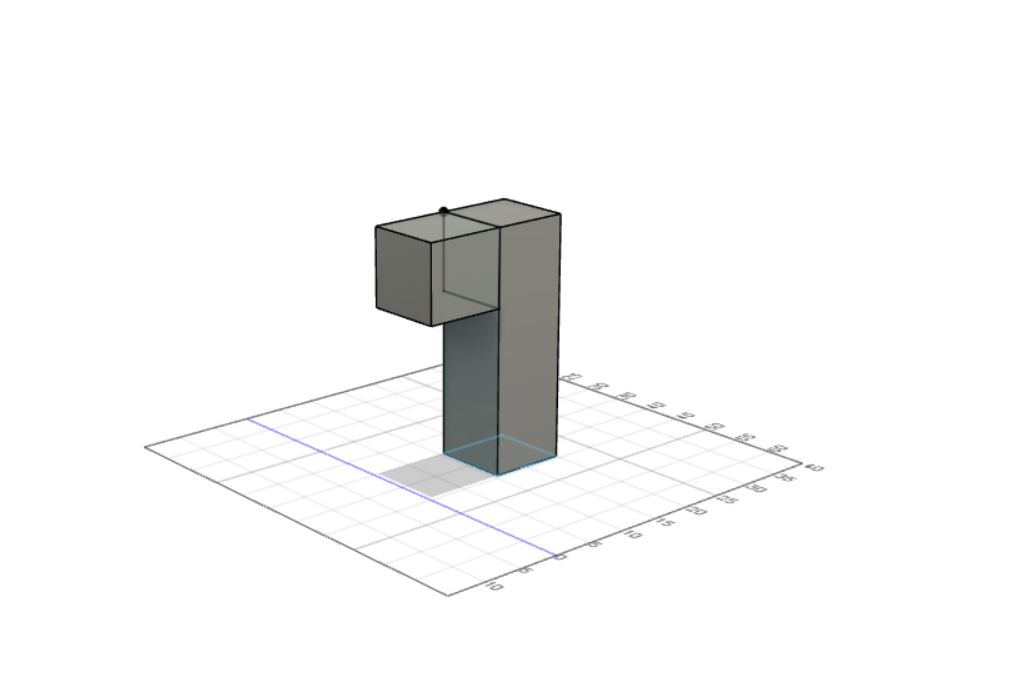 After that, I rotated the piece and created another square sketch on the top of the part I created with the extrusion