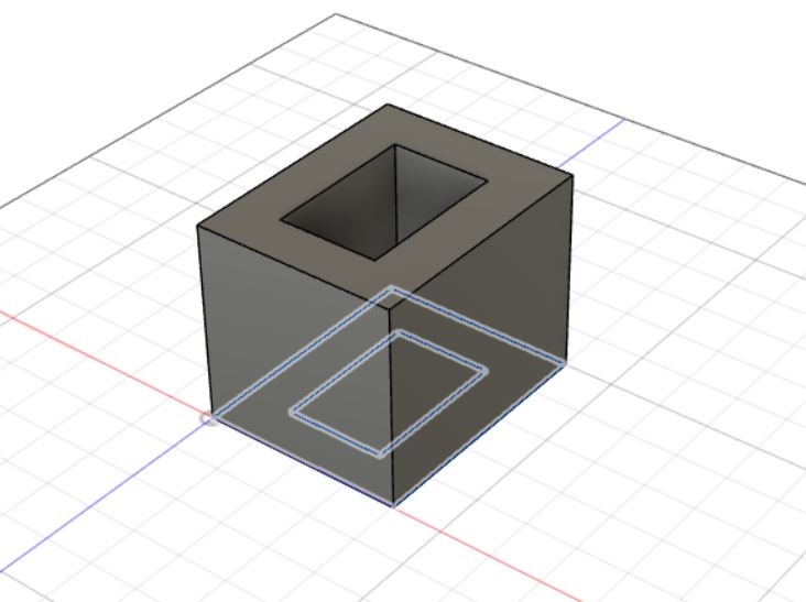 After the extrusion, I made another sketch at the top of the rectangular prism, which looks like this