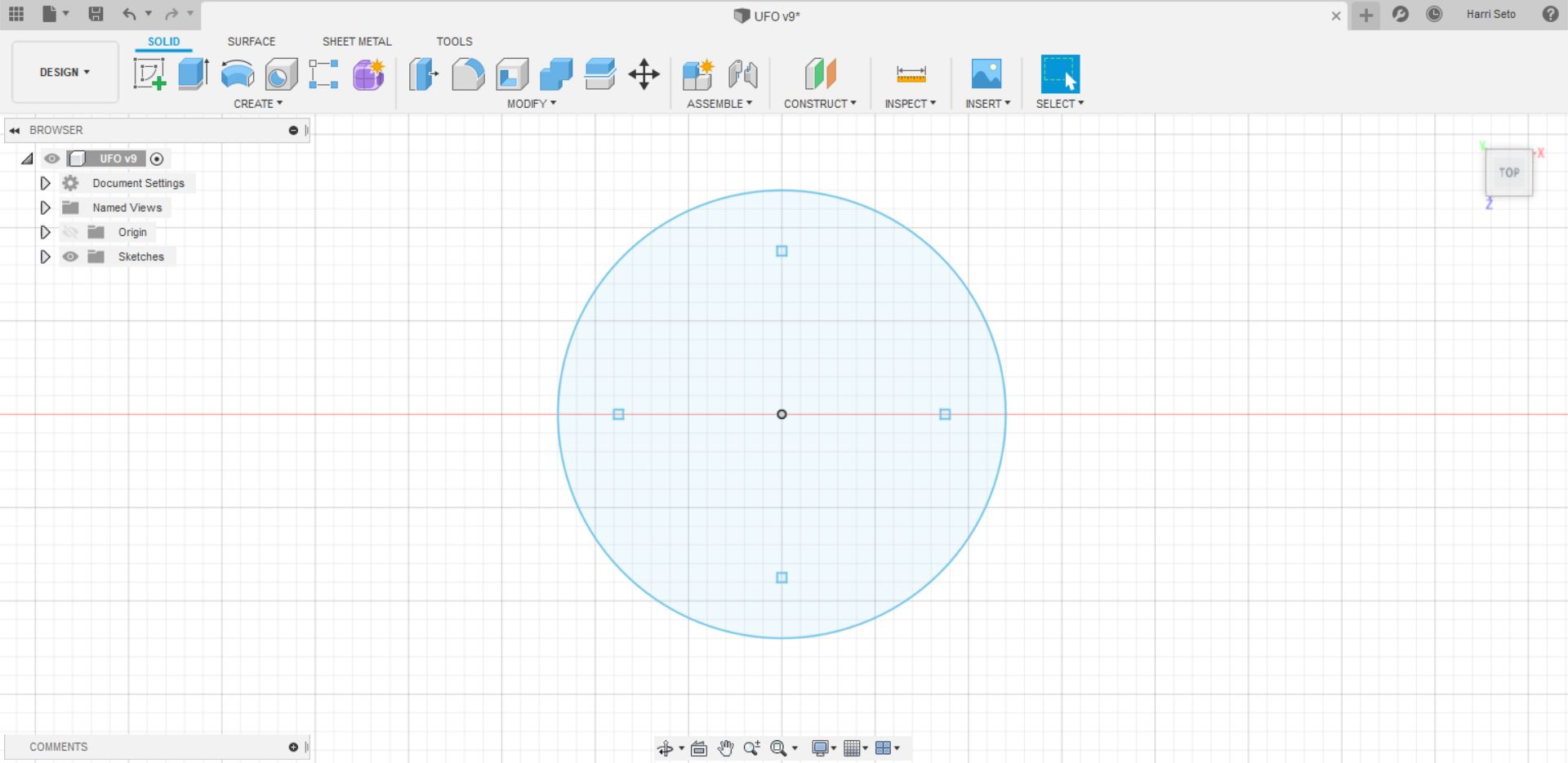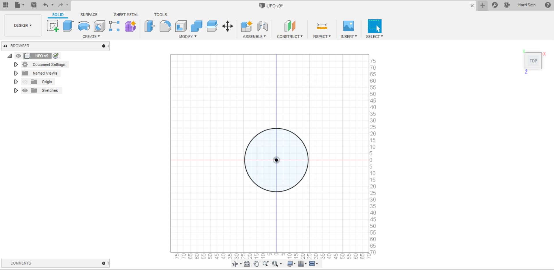 The first thing I did was that I created a sketch of what I wanted my UFO to look like, and this is what the sketch looks like