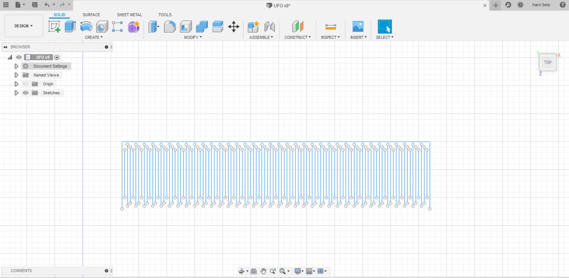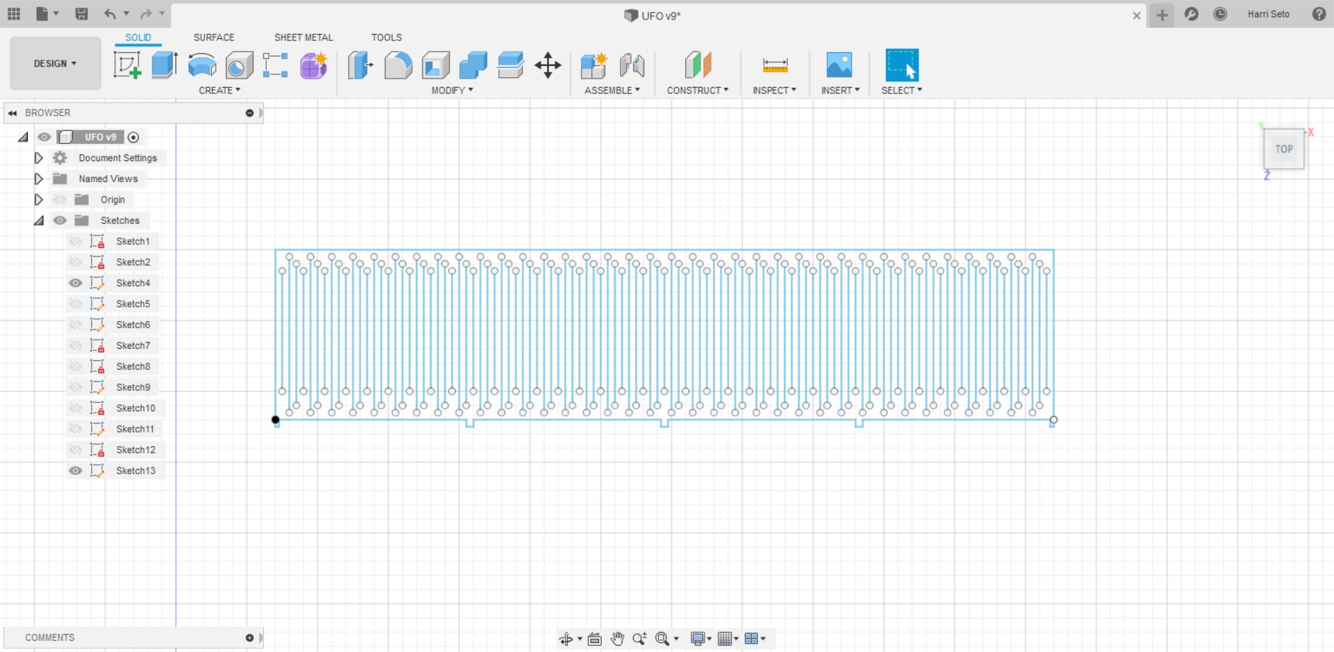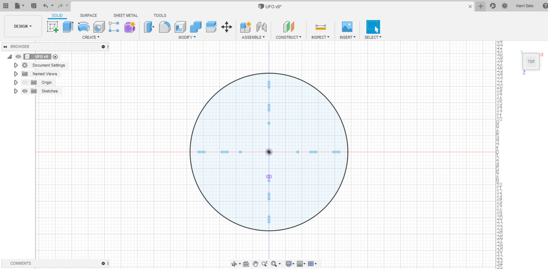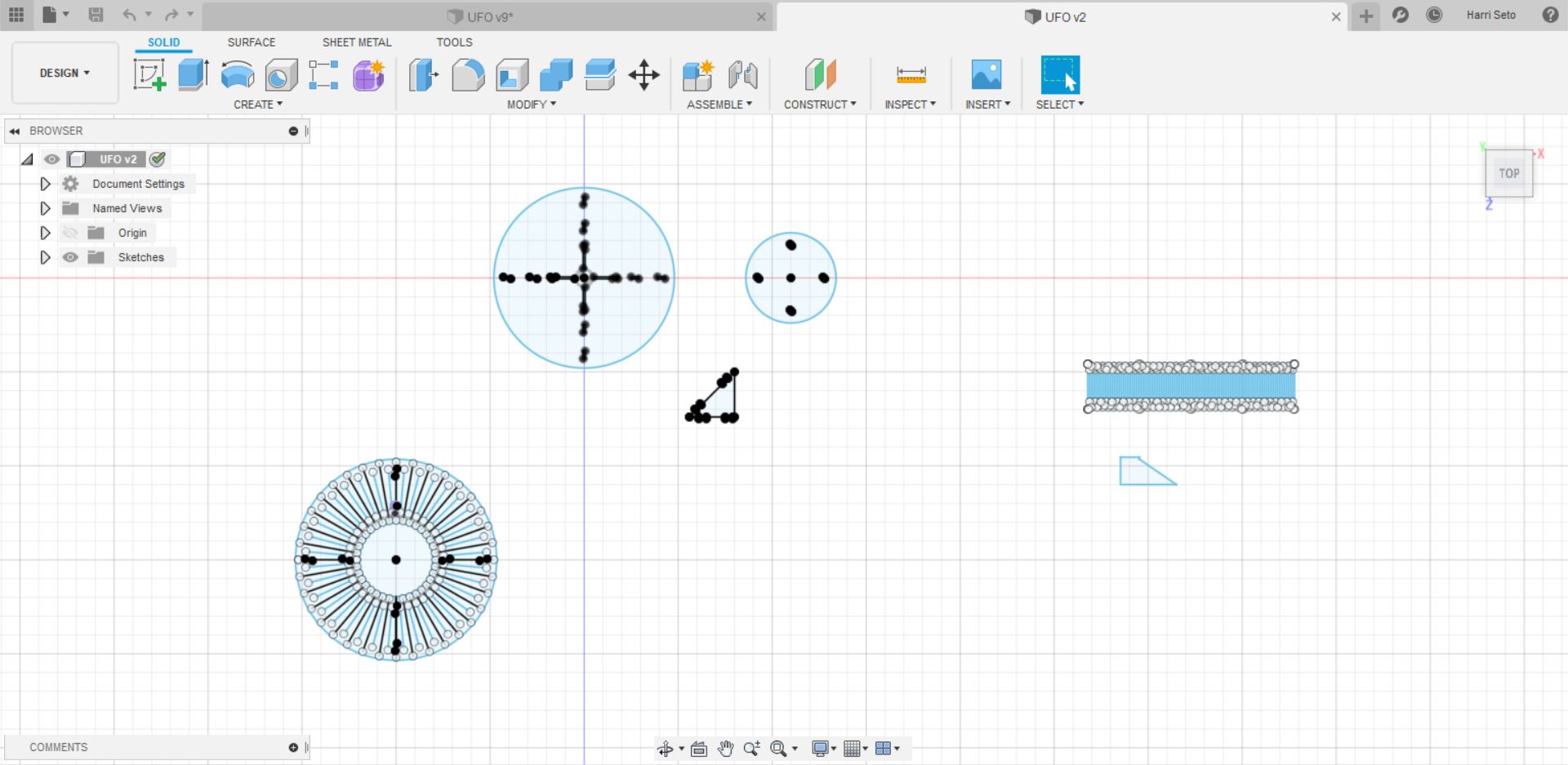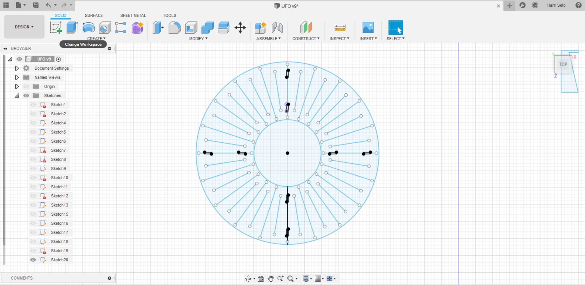 After I had got the sketch to work, I designed the cylinder/ center piece for my UFO, which relies heavily on the living hinge bending into a circle.