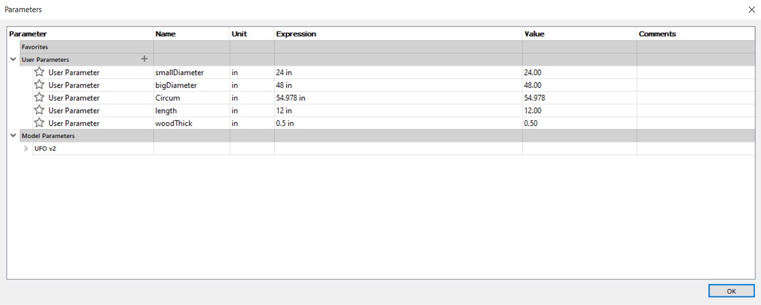 After making a quick sketch, I headed over to Fusion 360 to start my actual design. The first thing I did was that I figured out the measurements for my design, and then I inputted them in my parameters. Here are the parameters that I used for my design.