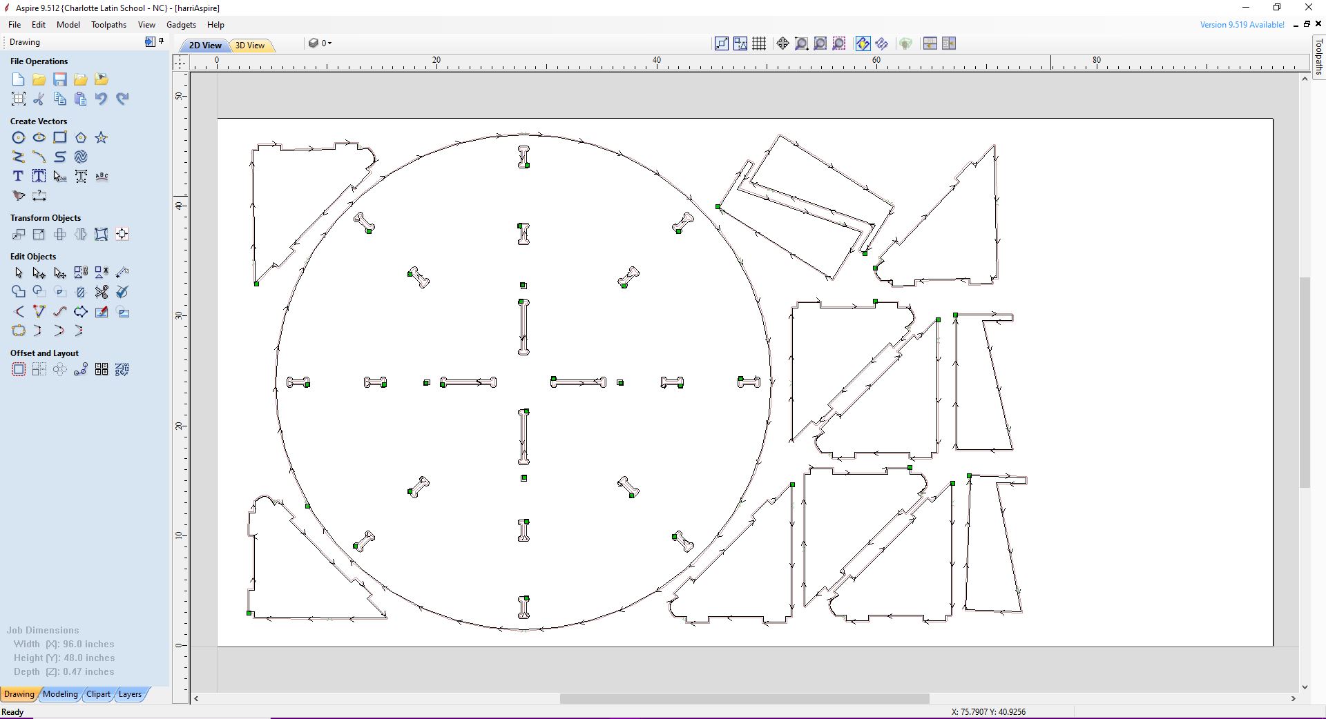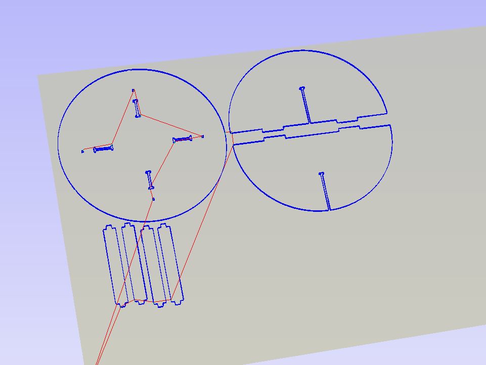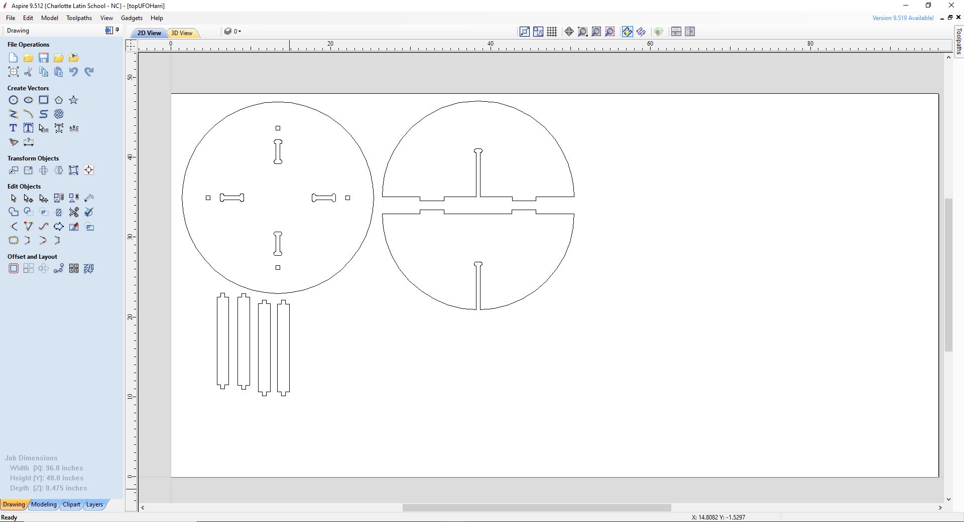 Once we got back to the lab, we had to catch up with some other weeks, but after that was done, I was able to get on Aspire and create my toolpaths for the design that I created, and was able to export my cardboard piece that I wanted to the laser cutter so I would have all the pieces neccesary to build the UFO.
