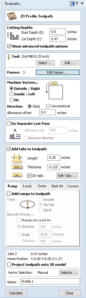 Since my cuts were simple, I only required the profile cut which was done by clicking this button: