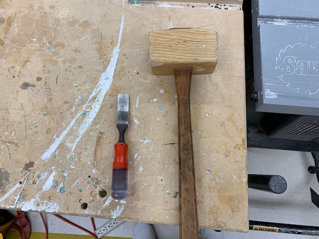 Once this was done, I grabbed a malet and a chisel in order to chip the tabs that I had set.