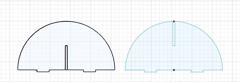 With this, I also created a top dome, which would also act as dividers, as there would be 4 spaces in which books could go in. I decided that I would use the method of creating a slot on the bottom half on one piece and the top half on one piece, which looked like this: