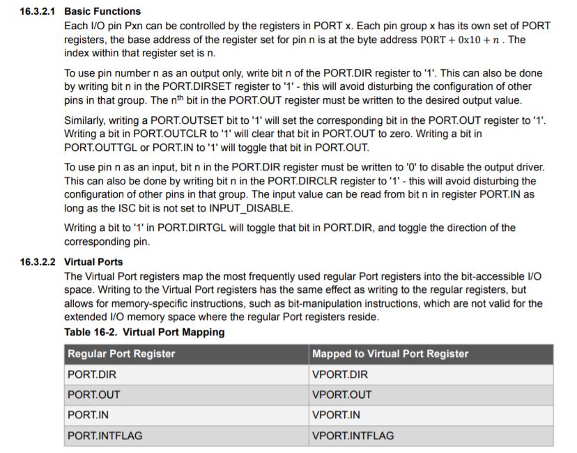 The fifth image shows the explanation of bitwise operations. This was important because it explained things such as PORTA, PORT.DIR, PORT.DIRSET, PORT.DIRCLR, and VPORTA, which I will use in my C Code later on.