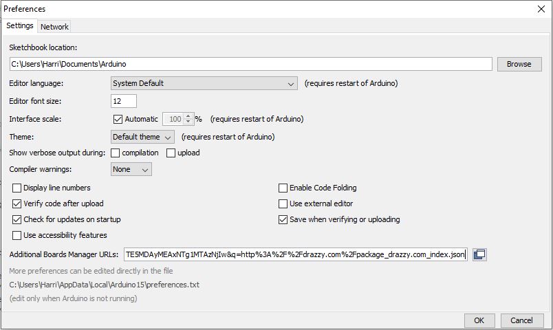 After I did this, I made sure that I had all of my libraries, which I checked in the board manager. I found out that I had to add a library called “megaTinycore” which I did, but involved me inserting this link into the preferences -> http://drazzy.com/package_drazzy.com_index.json